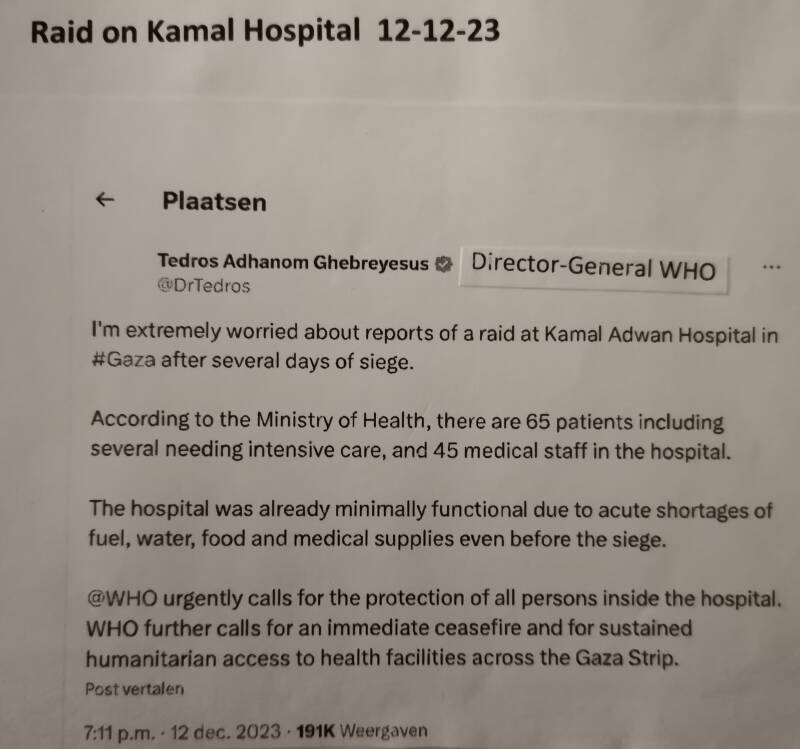 In Gaza kwamen sinds het begin van de oorlog meer dan 15 duizend Palestijnen om het leven, talloze anderen raakten gewond. Tussen de zes- en negenduizend Palestijnen worden nog vermist. Het kan niet anders dan dat, zonder substantiële internationale druk op Israël, de aantallen slachtoffers opnieuw sterk zullen toenemen.