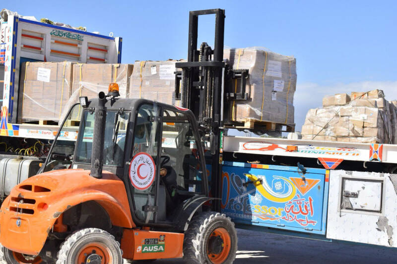 Critical supplies being prepared for shipment into Gaza. Photo by the Egyptian Red Crescent Society