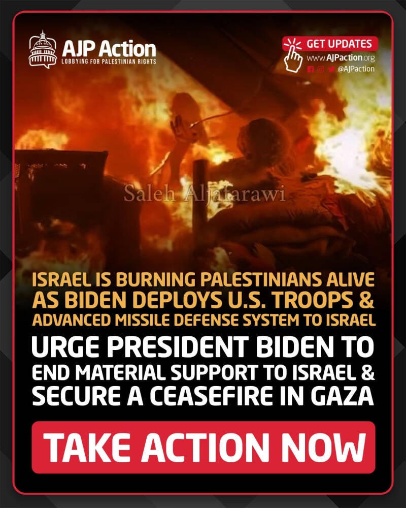 [WASHINGTON D.C., October 1, 2024] – Americans for Justice in Palestine Action (AJP Action) strongly condemns President Biden’s policy of appeasement toward Israeli Prime Minister Benjamin Netanyahu, a strategy that has emboldened Israeli aggression and further destabilized the Middle East. Today’s launch of more than 300 ballistic missiles by Iran into Israel underscores the perilous consequences of the administration’s failure to hold Israel accountable for its violations of international law and unchecked military actions.