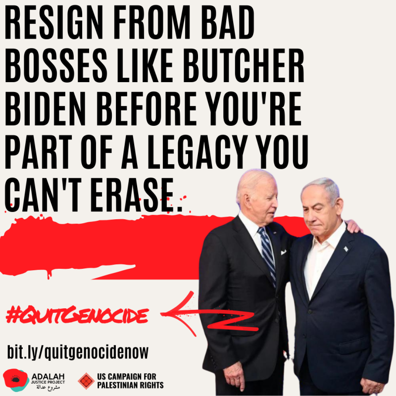 This campaign is not only another point of pressure to push for a ceasefire, but also a way to ring the alarm bells, proving to the Biden campaign that his support for genocide is an unforgivable position among Michigan voters. In 2016, Trump won Michigan by less than 11,000 votes...