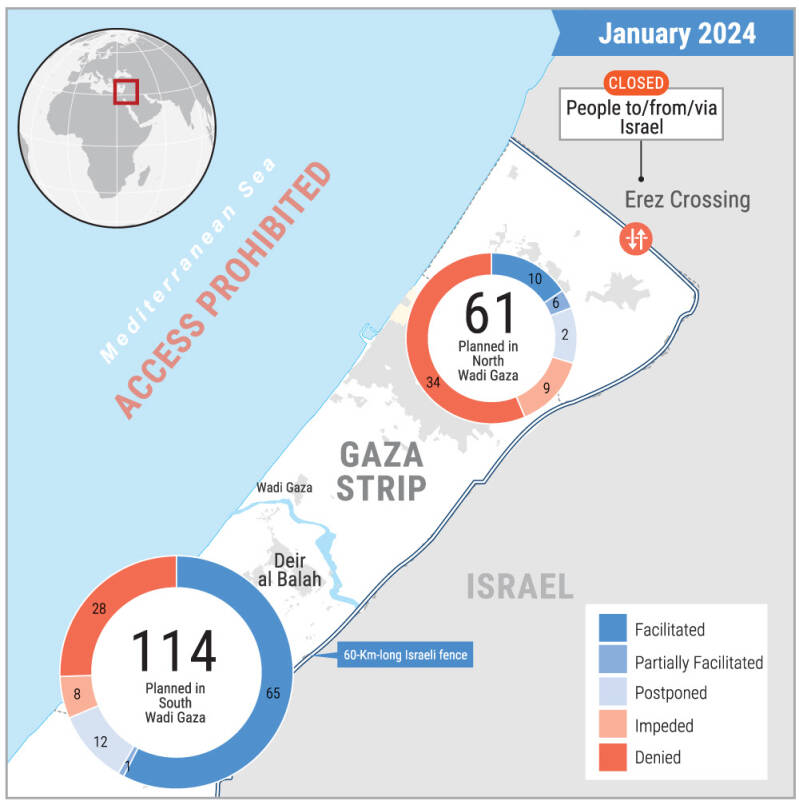 - On 1 February, UNRWA stated that the “colossal humanitarian needs of over 2 million people in Gaza now face the risk of deepening following the decision of 16 donor countries to stop financial support to UNRWA.” The cuts in support are in response to allegations by the Israeli authorities that several UNRWA staff members participated in the attacks in southern Israel on 7 October 2023. UNRWA has terminated the contracts of nine of the accused and an investigation by the UN’s Office of Internal Oversight Services (OIOS) has been activated. The Commissioner-General, Philippe Lazzarini, reiterated “the call of the UN Secretary General Antonio Guterres to resume funding to UNRWA. If the funding remains suspended, we will most likely be forced to shut down our operations by end of February not only in Gaza but also across the region.” In a statement issued on 30 January, Principals of the Inter-Agency Standing Committee warned that cuts to UNRWA’s funding would have "catastrophic consequences for the people of Gaza," as "no other entity has the capacity to deliver the scale and breath of assistance that 2.2 million people in Gaza urgently need."