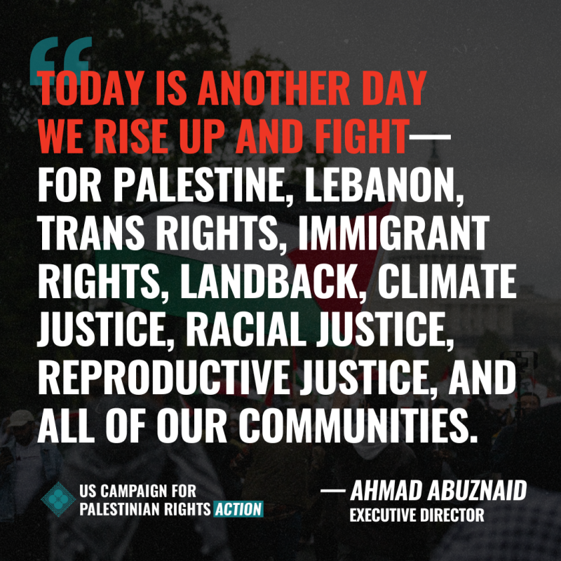 fight for it! The more we can resist in the heart of the U.S. empire, the easier it will become for our people in Palestine to achieve liberation.
