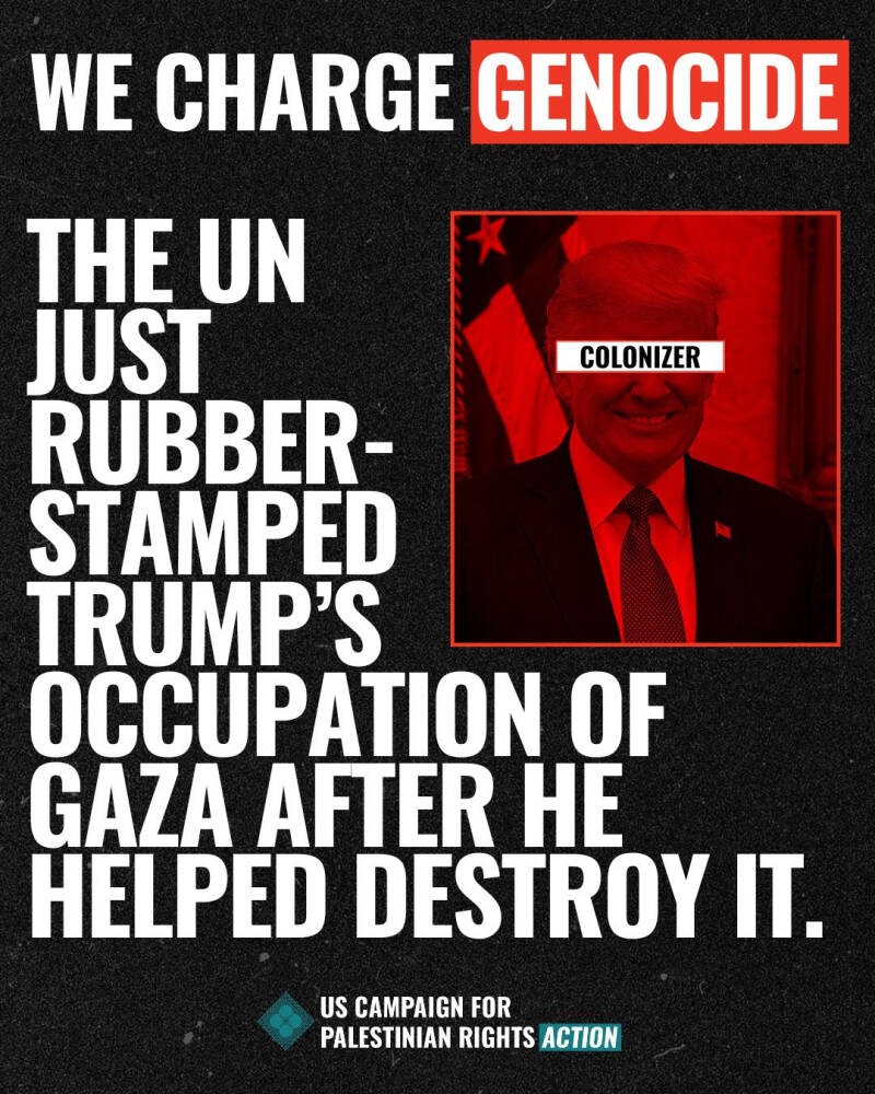 The Israeli military keeps bombing Palestinian families in Gaza on a daily basis. Meanwhile in the West Bank, Israeli forces are violently invading northern refugee camps and demolishing Palestinian homes in a large-scale assault, while settlers rampage and attack Palestinian communities. Rather than hold Israel accountable for countless crimes, Trump has concocted his own colonial plans to chair a foreign board to govern Gaza.