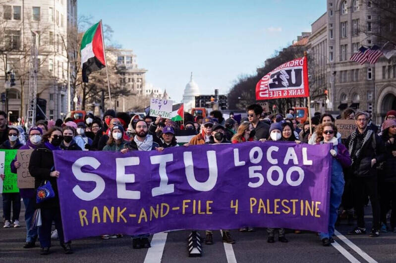 - A coalition of protesters, including members of JVP-Bay Area and JVP-Sacramento.