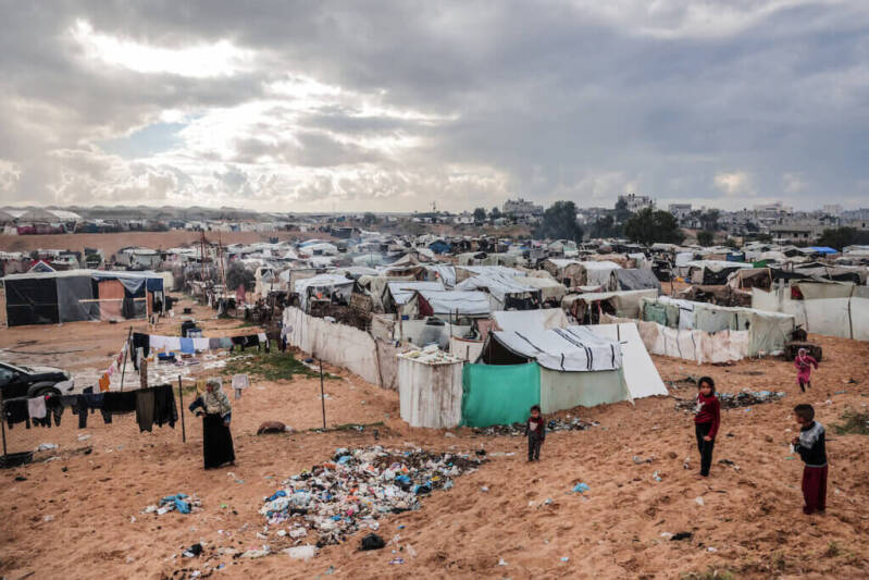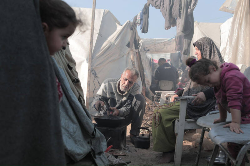Some 1.9 million people in Gaza have begun 2024 in a state of displacement. "We cannot talk about safety anywhere," stated the United Nations High Commissioner for Human Rights. "People are sleeping in the streets, out in the open." Improvised tent camp in Rafah. Photo by the World Food Programme