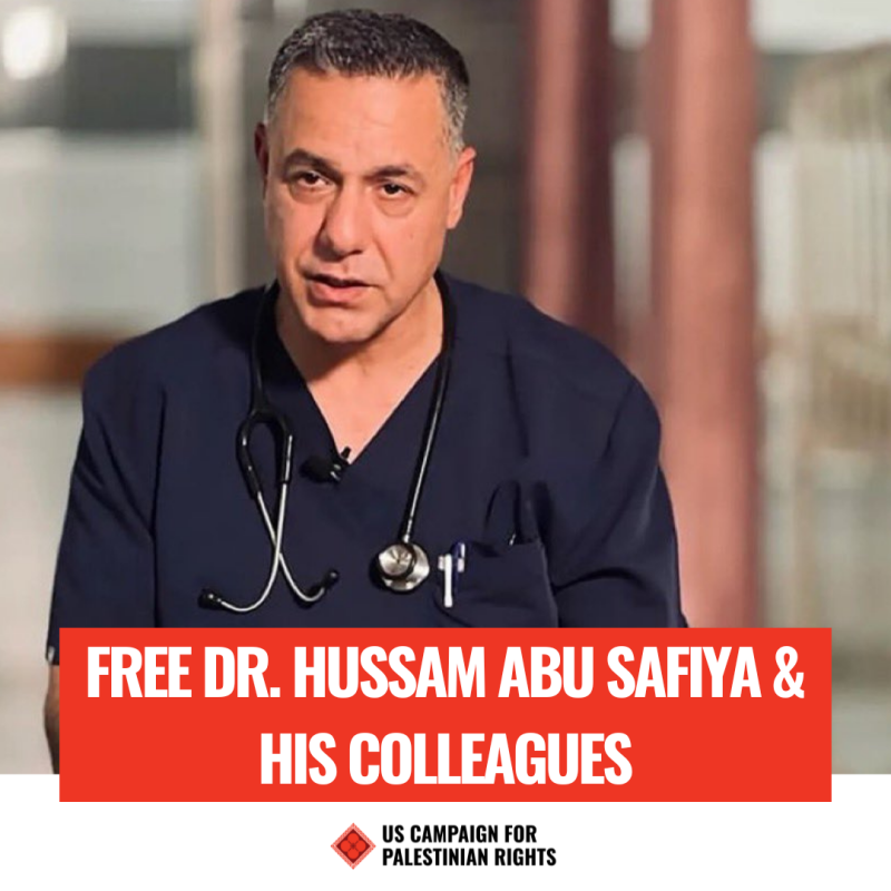 Vrijdag 27 december werd in Noord-Gaza de Palestijnse arts Hussam Abu Safiya door het Israëlische leger opgepakt. Doker Abu Safiya is directeur van het Kamal Adwan-ziekenhuis in de stad Bayt Lahiya in Noord-Gaza, en staat ook wel bekend als 'de stem van de gezondheidszorg' in Gaza. Samen met een groeiend aantal internationale organisaties zet The Rights Forum zich in voor zijn directe vrijlating.